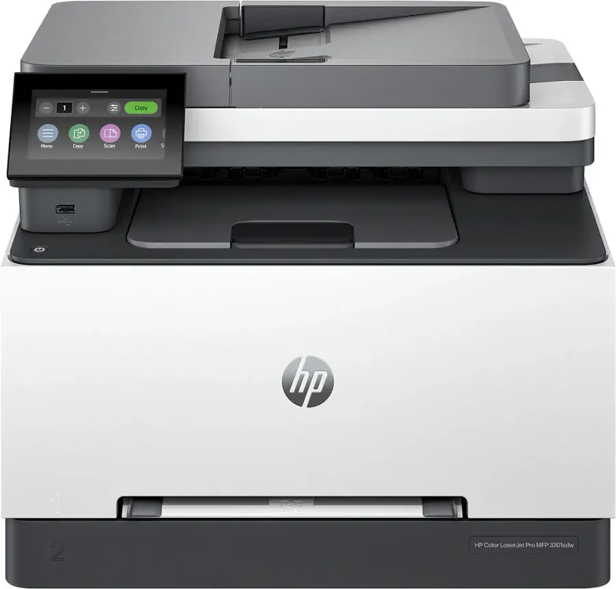 Ideal for offices, get vibrant laser-quality color and powerful productivity with the Color LaserJet Pro MFP 3301sdw. This all-in-one color laser printer is loaded with features and incredible speed perfect for offices. Print, scan and copy from anywhere with HP Smart app. Connect via wireless or ethernet with the 3301sdw, an MFP that has built-in Wi-Fi and HP Wolf Pro to keep your information secure.